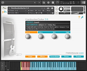 Automatic Stratocaster power chords for Kontakt with editable arpeggiator, palm mutes, dynamics and built-in amp FX. Play dry or processed.